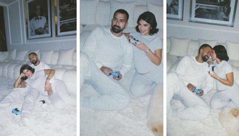 الصور التي نشرتها أصالة أظهرت بطنها المنتفخ في لحظات عائلية مميزة، حيث ظهرت مع زوجها وهما يستمتعان بلعب الـ"بلايستيشن" معًا، في إشارة لطابع مرح وعفوي يميز علاقتهما.