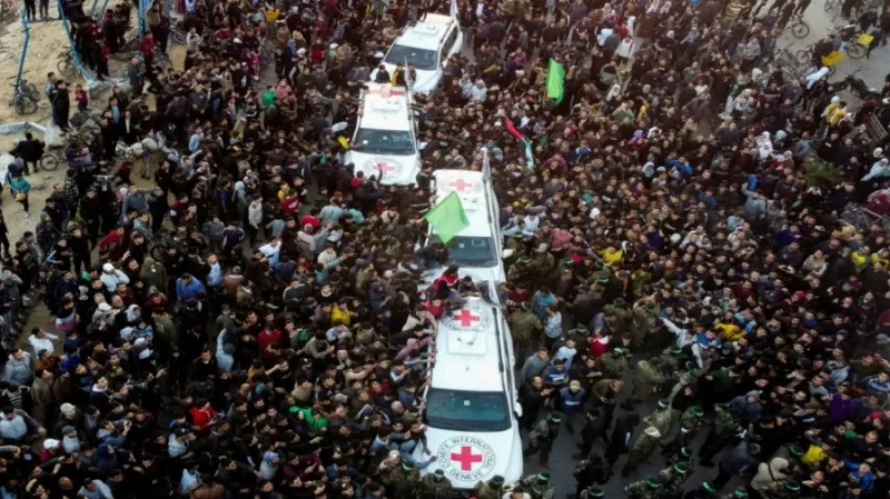 خبرني - تُسلّم حركة حماس الجمعة، لائحة بأسماء 4 محتجزين إسرائيليين سيفرج عنهم السبت ضمن الدفعة الثانية من صفقة التبادل بموجب اتفاق وقف إطلاق النار في قطاع غزة، وفقا عضو المكتب السياسي في حماس باسم نعيم.