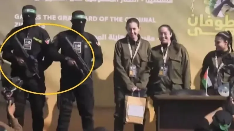 ووجهت الأسيرات الإسرائيليات المفرج عنهم، اليوم السبت، ضمن المرحلة الثانية من صفقة التبادل مع حماس، التحية لكتائب القسام والشعب الغزاوي على المنصة قبل تسليمهن للصليب الأحمر الدولي.