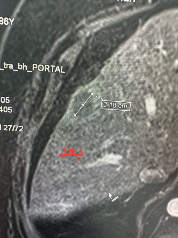 كما بيّنت رئيس قسم الأشعة عقيد طبيب مستشار ديانا الجمال، أن صور المتابعة للمريض بالرنين المغناطيسي للكبد أظهرت كَي الورم كاملاً ، مضيفة أن هذه التقنية تعتبر من التقنيات الحديثة في علاج الأورام التي لا يمكن استئصالها جراحيا.
