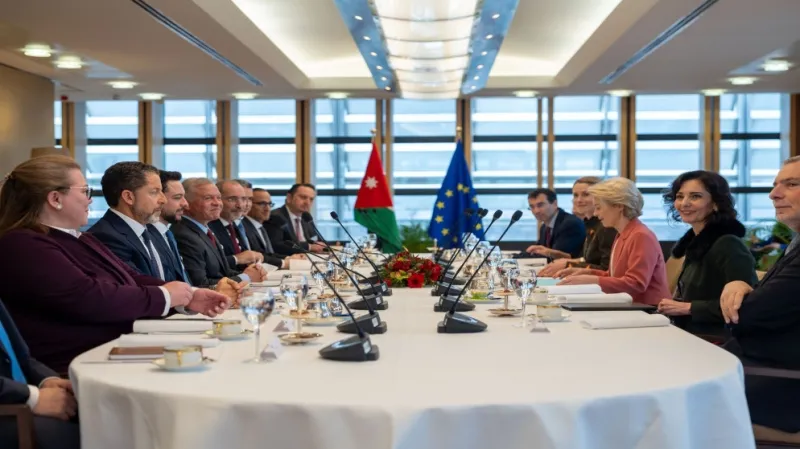 وأضافت عبر منصة (إكس): "يبدأ اليوم فصل جديد مع الأردن، وسيتم دعم الشراكة بدعم مالي بقيمة 3 مليارات يورو".