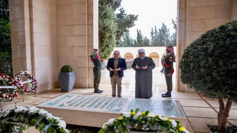 خبرني -  زار نائب الملك، سمو الأمير علي بن الحسين، اليوم الخميس، ضريح المغفور له، بإذن الله، جلالة الملك الحسين بن طلال، طيب الله ثراه، بمناسبة الذكرى السادسة والعشرين لرحيله، التي تصادف يوم غد الجمعة، وقرأ الفاتحة على روح جلالته الطاهرة، ووضع إكليلا من الزهور على الضريح.