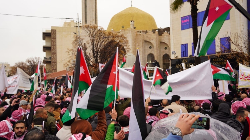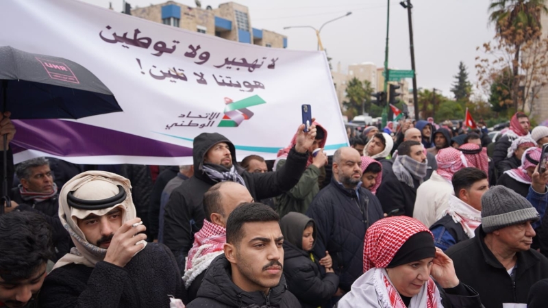 وشهدت الوقفة حضوراً واسعاً من مختلف الفعاليات الشعبية والحزبية، حيث رفع المشاركون الأعلام الأردنية، مجددين التأكيد على موقف الأردن الثابت في رفض أي مشاريع تستهدف تهجير الفلسطينيين أو تصفية قضيتهم، ومشددين على أن الأردنيين يقفون صفاً واحداً خلف الملك في الدفاع عن القضية الفلسطينية وحماية الهوية الوطنية الأردنية.