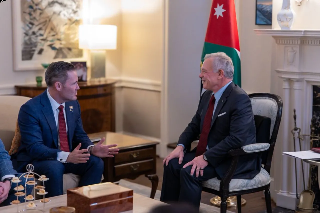 خبرني - التقى الملك عبدالله الثاني في واشنطن، الاثنين، مع مستشار الأمن القومي الأميركي مايك والتز.