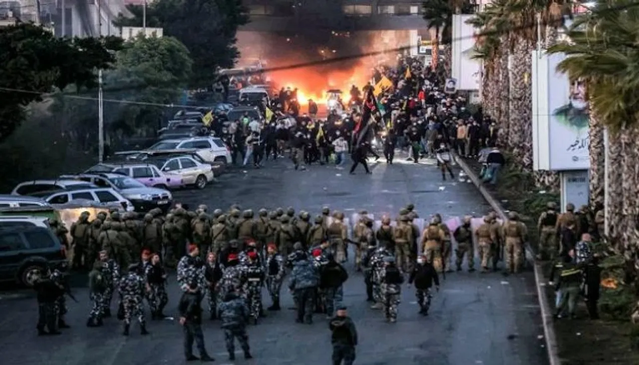 وأظهرت مشاهد تم تداولها على شبكات التواصل الاجتماعي متظاهرين، بعضهم ملثّمون يرفعون أعلام حزب الله يتعرّضون لرجل بالزي العسكري وآخر بالزي المدني قرب سيارة محترقة تابعة لليونيفيل.