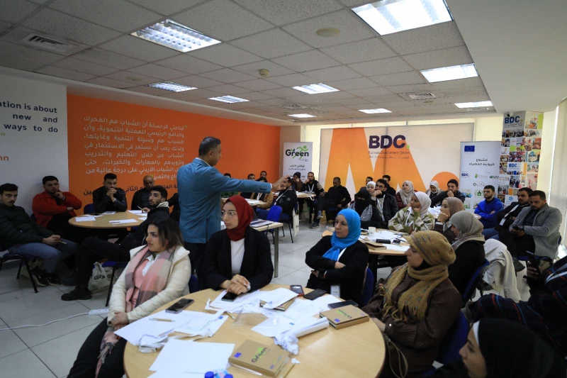 خبرني - انطلاقاً من تعزيز تعاون مركز الإبداع والابتكار وريادة الأعمال في جامعة عمان العربية مع مؤسسات المجتمع المحلي، شارك الدكتور سامر عياصرة مدير مركز الإبداع والابتكار وريادة الأعمال في الهاكثون الأخضر وذلك ضمن مشروع الروابط الخضراء الذي ينفذه مركز تطوير الأعمال - BDC، والممول من الاتحاد الأوروبي بالشراكة مع جمعية إدامة للطاقة وشبكة العمل المناخي.