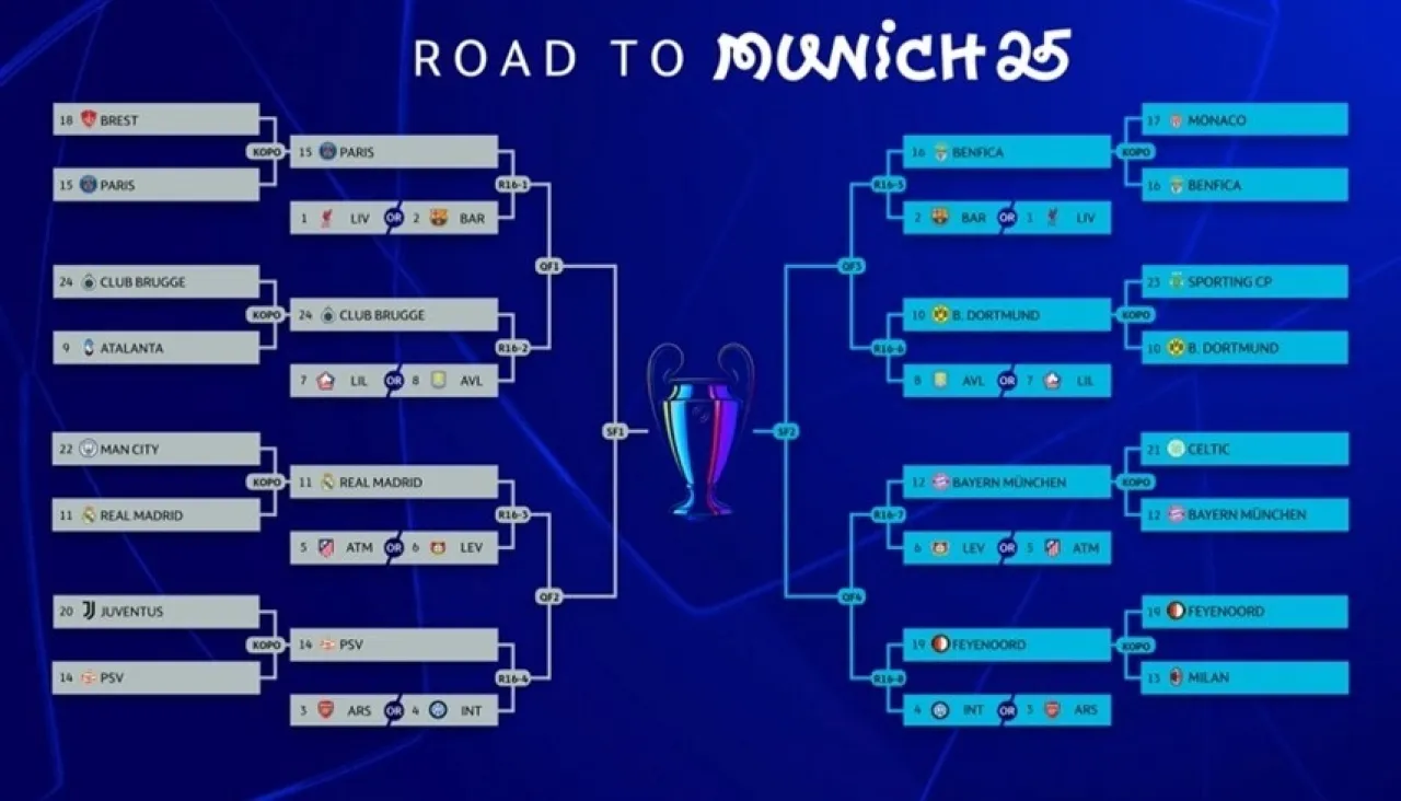 وحدد "يويفا" طريق الأندية في دور 16 والمواجهات المتوقعة للأدوار الحاسمة في دوري أبطال أوروبا كالتالي: