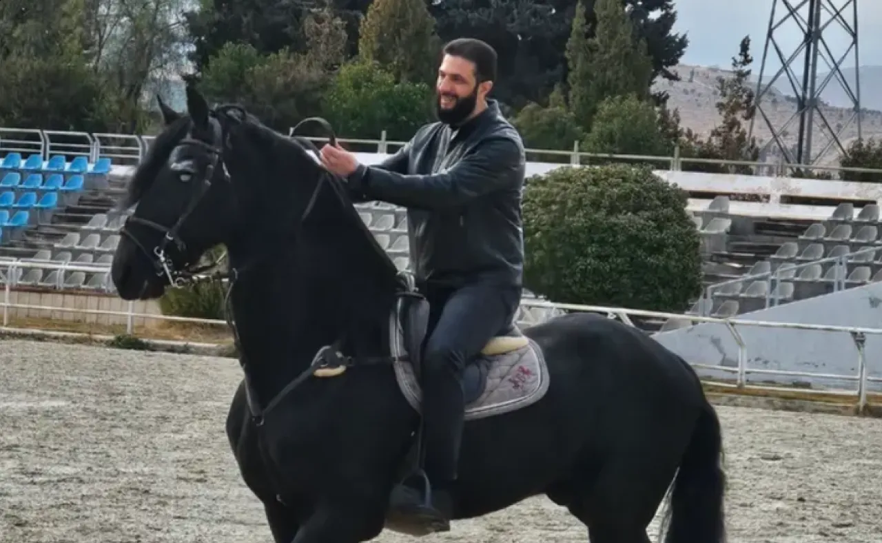 فقد ظهر الشرع في صورة على حصان أسود نشرها له الإعلامي موسى العمر الذي رافقة قي إطلالة كثيرة خلال الفترة الماضية، عبر حسابه الرسمي في منصة X.