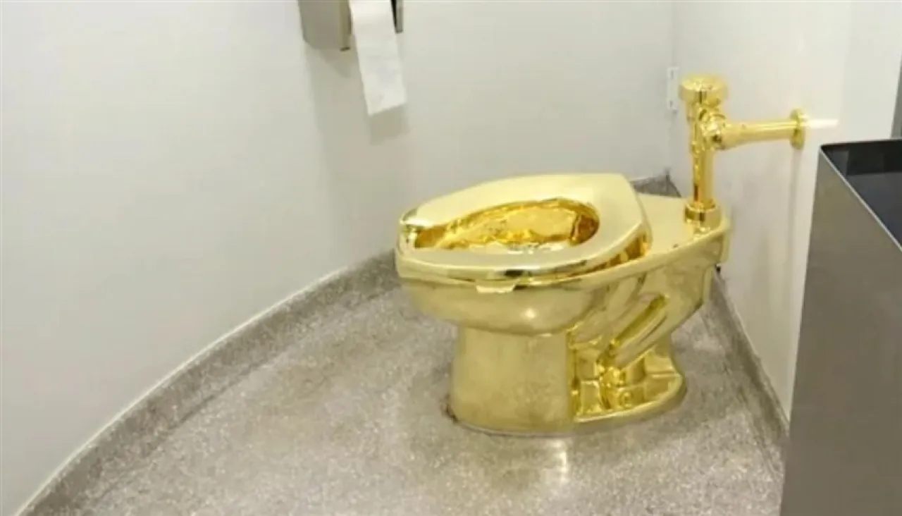وبحسب ما نشره موقع "hindustan times"، تشكل المرحاض من تركيبة ذهبية عيار 18 قيراطاً، تحمل عنوان "أمريكا"، وهي جزءاً من معرض للفنان الإيطالي ماوريتسيو كاتيلان.