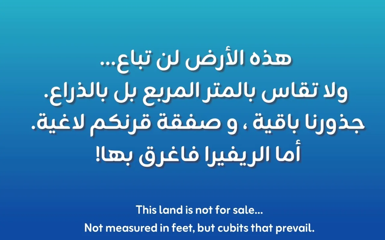 وذكرت المجموعة ان الإعلان الذي بدأ بعبارة "رد بك نبضي يا أرضي تعالي في حضني حبي لك يبني" يجسد الأرواح الصامدة التي تبقى ثابتة أمام الصعاب، حيث ينقل الإعلان التلفزيوني رسالة قوية تفيد بأن "أهل الأرض هنا، وسيبقوا دائما حاضرين، متشبثين بحبهم وولائهم لأرضهم، مهما كانت التحديات التي يواجهونها."