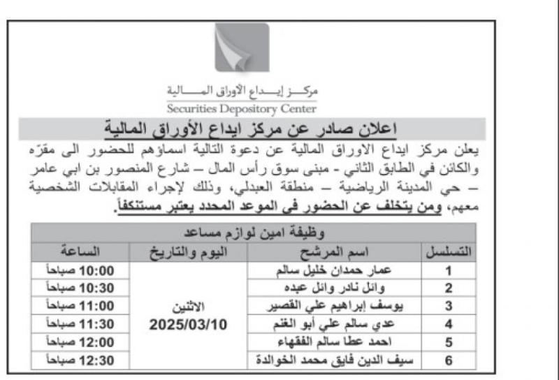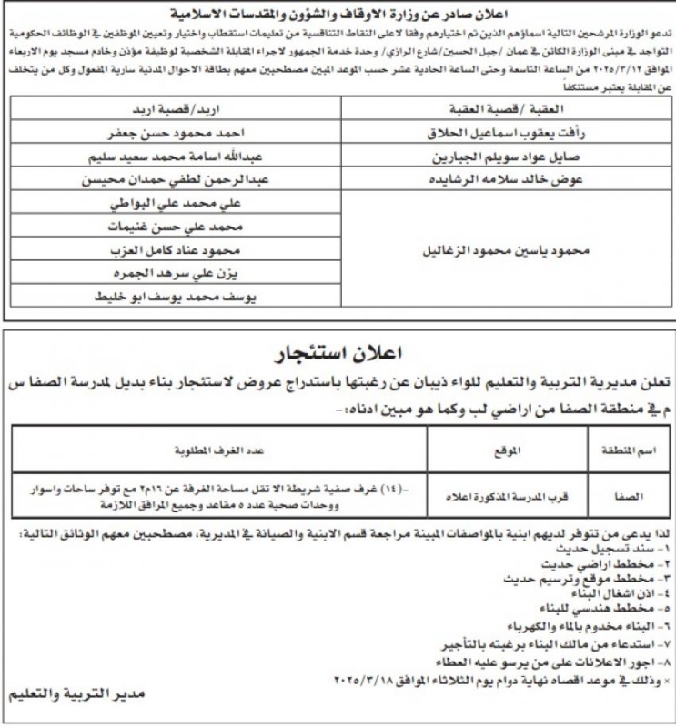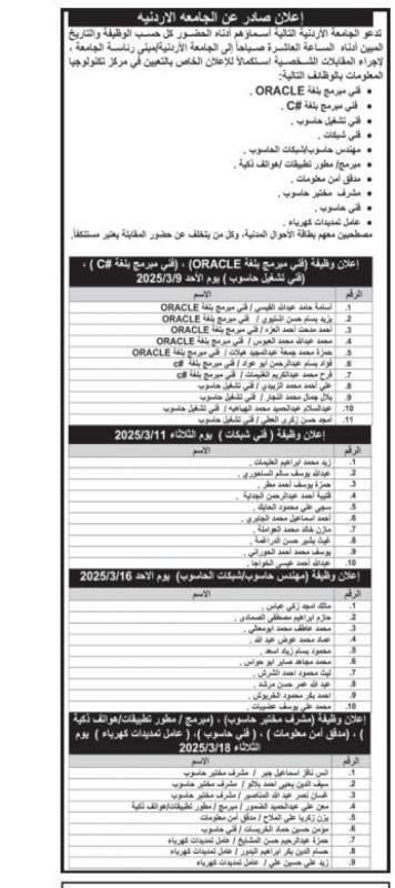 وكما أعلنت مؤسسات أخرى حاجتها لملء شواغر وظيفية لديها.