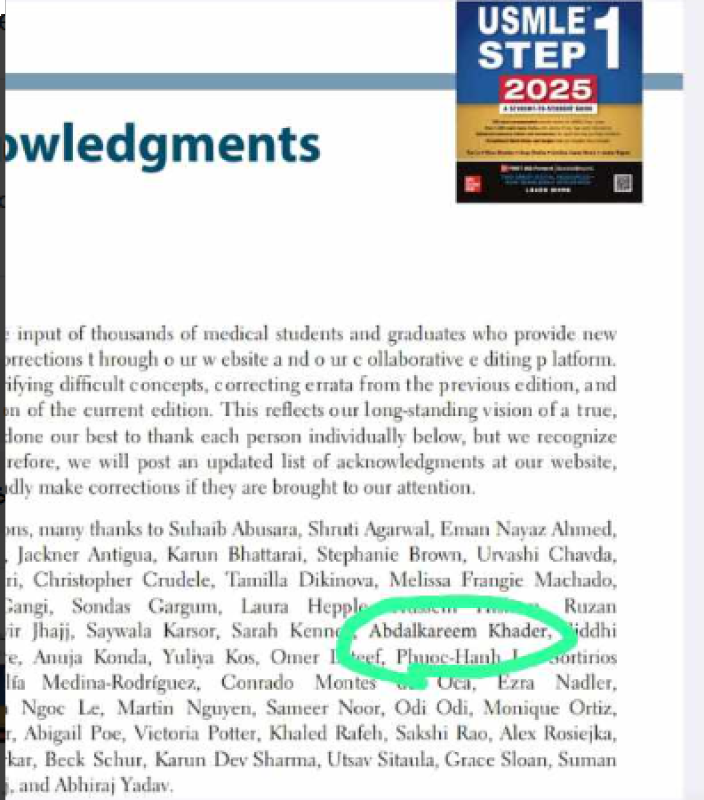خبرني - حقق الطالب عبد الكريم خضر عبد الكريم حسين، من السنة الخامسة في كلية الطب بجامعة العلوم والتكنولوجيا، إنجازًا طبيًا مميزًا بعد تصحيحه لثلاثة أخطاء علمية في كتاب USMLE Step 1، أحد أهم المراجع العالمية لدراسة الامتحان الأمريكي لمزاولة مهنة الطب.
