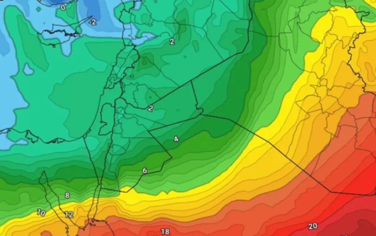 الخميس والجمعة 20-21-3-2025: مراقبة تأثر المملكة بكتلة هوائية باردة لذا يطرأ انخفاض حاد وكبير على درجات الحرارة مقارنة بما كان عليه الحال، وتكون العظمى بحدود 11 مئوية في العاصمة عمان يوم الجمعة، ويكون الطقس باردًا نسبيًا إلى بارد مع ظهور كميات من السحب على ارتفاعات مختلفة، وتصبح الأجواء أكثر برودة من المعتاد أثناء الليل.