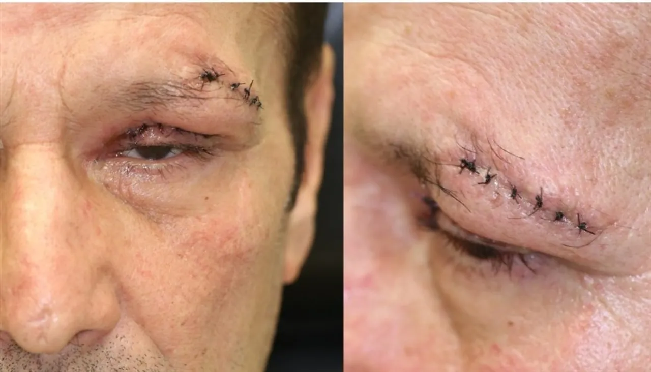 وبعد إزالة جميع الأنسجة الميتة، تمكن المريض من المشي دون أي تشوه كبير، وعادت وظيفة جفنه إلى طبيعتها.
