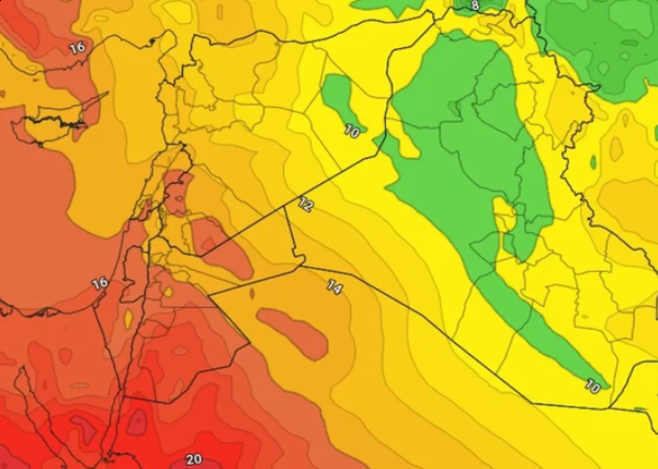 وتتأثر المملكة وعموم مناطق الحوض الشرقي للبحر الأبيض المتوسط اعتبارًا من الثلاثاء ويتزايد الأربعاء ونهاية الأسبوع بتمدد كتلة هوائية ذات درجات حرارة أعلى من المعدلات، حيث تكون درجات الحرارة خلال هذه الفترة بشكل ملموس وتكون أعلى من معدلاتها نسبةً لمثل هذا الوقت من العام بحدود 8-10 درجات مئوية.