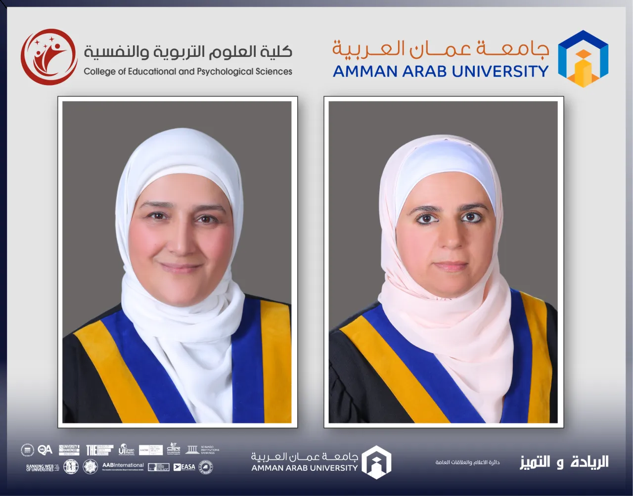 خبرني - ضمن سلسلة الأنشطة المجتمعية والعلمية التي اعتادت كلية العلوم التربوية والنفسية في جامعة عمّان العربية المشاركة بها، شاركت الدكتورة نسيبة الصوا/ رئيس قسم الإدارة والمناهج وطرق التدريس وعضو رابطة علماء الاردن، والدكتورة رند عربيات/ رئيس قسم علم النفس التربوي والإرشاد النفسي والتربوي، في سلسلة ندوات رابطة علماء الأردن تحت شعار "رمضان شهر الفتوحات".