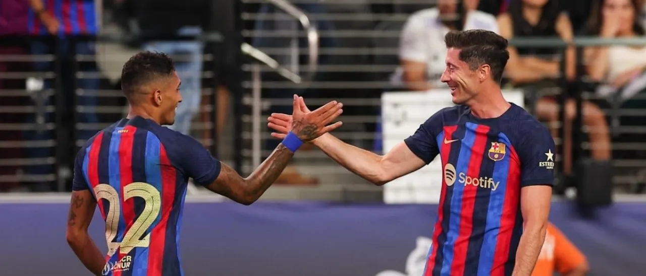 خبرني - ذكر موقع "ريليفو" الإسباني، أن نجمي نادي برشلونة، البولندي روبرت ليفاندوفسكي والبرازيلي رافينيا، تلقيا عروضاً مغرية من أندية سعودية للانضمام إليها في الموسم المقبل.