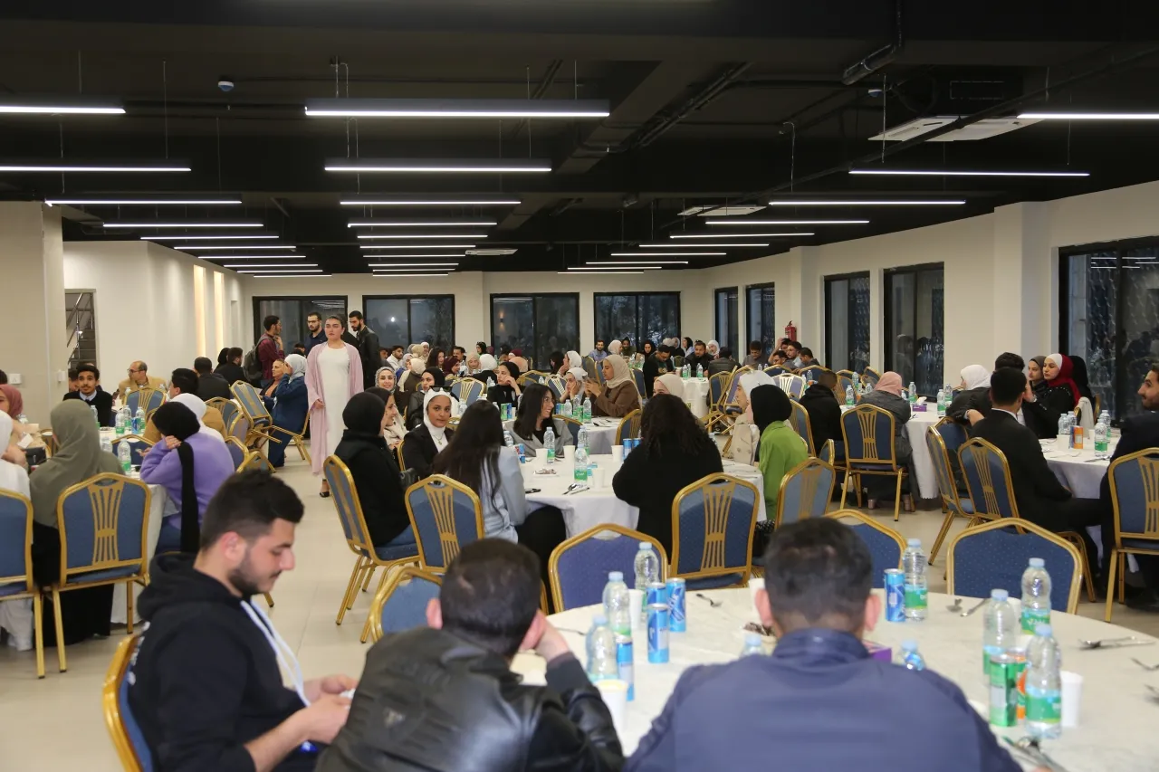 خبرني - نظمت عمادة شؤون الطلبة / شعبة الخدمات الطلابية في جامعة الزيتونة الأردنية إفطاراً رمضانياً لطلبة الجامعة من كافة الكليات، بحضور عميد شؤون الطلبة الدكتور منير عفيشات وعمداء الكليات ونواب العمداء وعدد من أعضاء الهيئة التدريسية والإدارية. ويأتي هذا النشاط تعبيراً عن اهتمام الجامعة بطلبتها، حيث عبّر رئيس الجامعة الأستاذ الدكتور محمد المجالي عن أهمية استمرار التواصل بين الطلبة من مختلف الكليات، وأضاف أن هذه الفعاليات تساهم في تعزيز روح الأسرة الجامعية وتقوية العلاقات بين الطلبة وأعضاء الهيئة التدريسية والإدارية. كما أكد على أن مثل هذه الأنشطة تعكس قيم التضامن والتآزر خلال شهر رمضان المبارك، مشيراً إلى أن الجامعة تسعى دائماً لتوفير بيئة داعمة ومشجعة لجميع طلبتها، بما يسهم في تعزيز تجربتهم الجامعية على كافة الأصعدة.