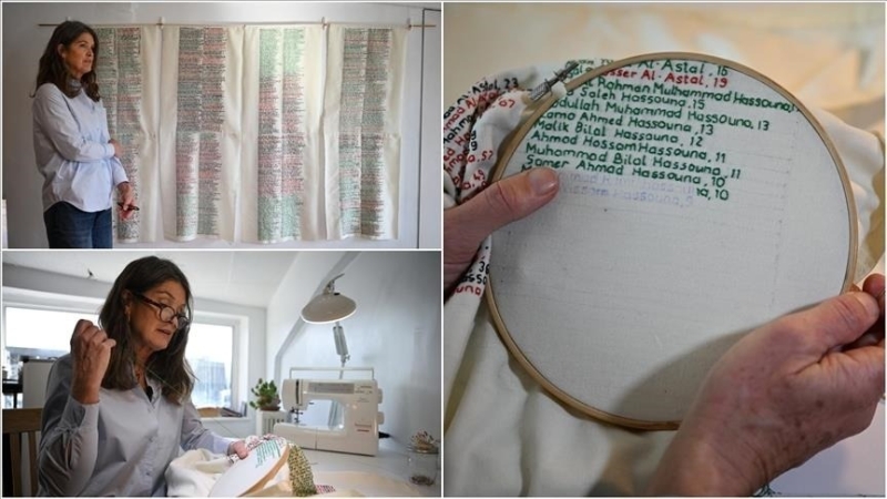 إيرلندية توثّق ضحايا غزة بالتطريز بخيوط ألوان العلم الفلسطيني