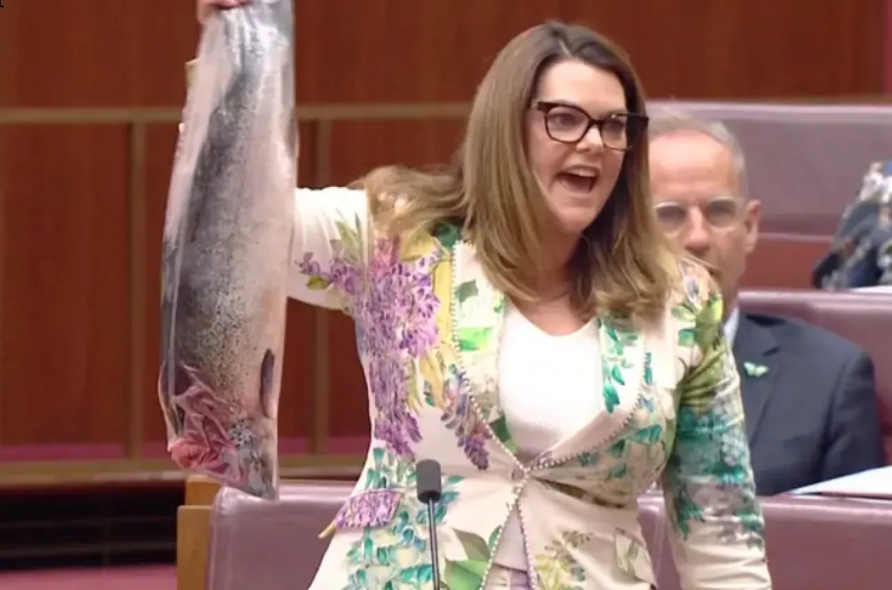 خبرني - أثارت مسؤولة منتخبة مدافعة عن البيئة ضجة في مجلس الشيوخ الأسترالي اليوم الأربعاء إثر تلويحها بسمكة سلمون نافقة في القاعة للتنديد بآثار تربية الأسماك المكثفة.