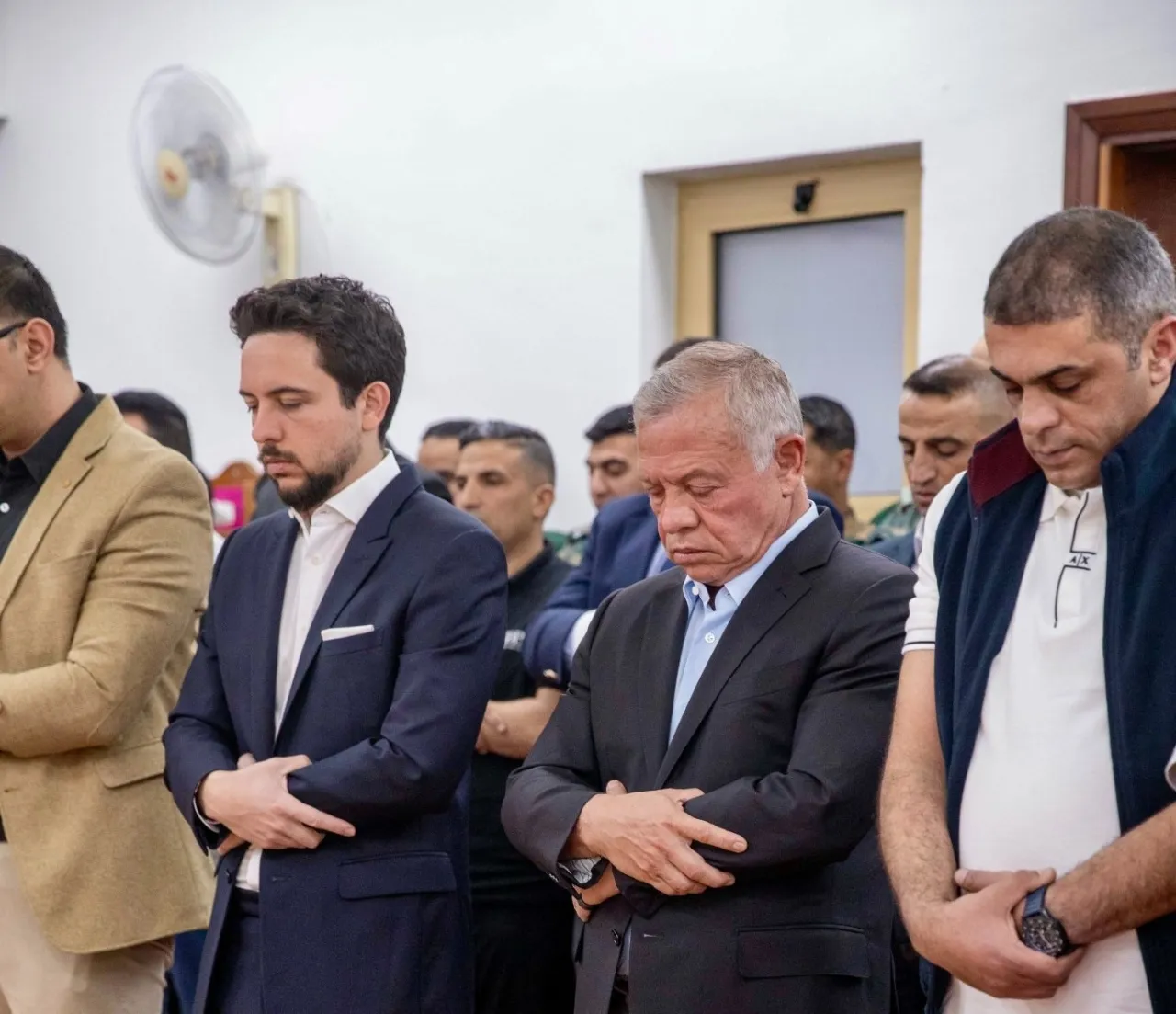 خبرني - أدى جلالة الملك عبدالله الثاني وسمو الأمير الحسين بن عبدالله الثاني، ولي العهد، صلاة عيد الفطر في مسجد الحرس الملكي في العقبة.