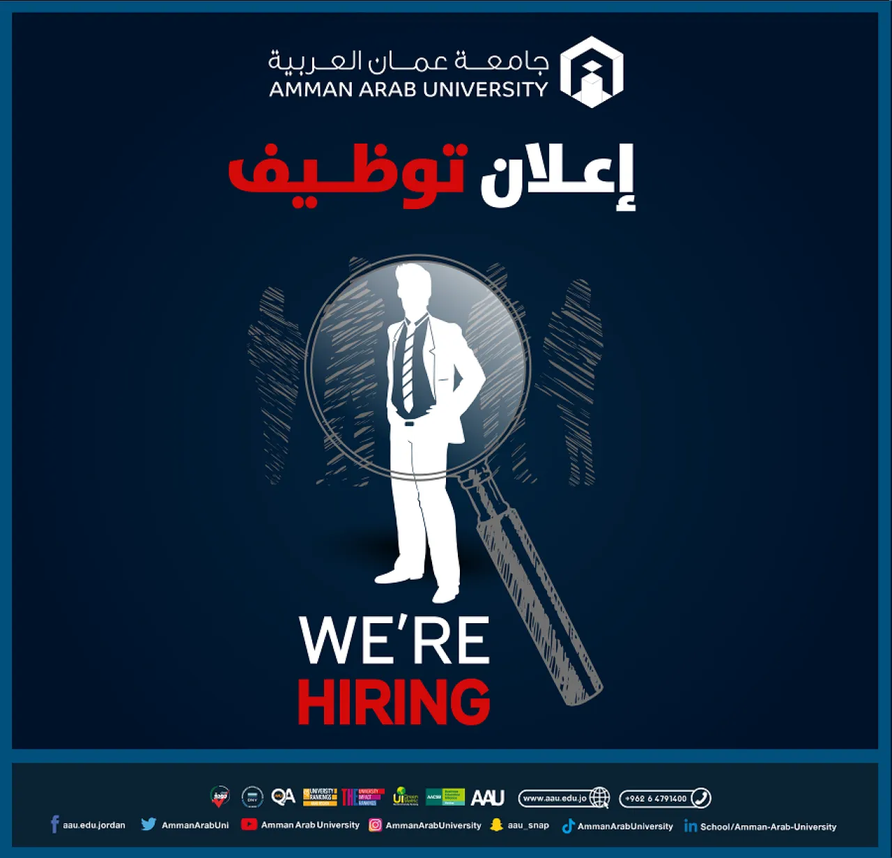 للاطلاع على الإعلان من خلال الرابط الاتي :  https://www.aau.edu.jo/ar/node/8202