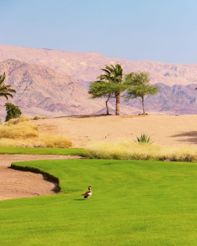 ويمتاز نادي أيلة للجولف بتوفير منظومة متكاملة ذات تصنيف عالمي رفيع تضم ملعب 18 حفرة ومعدل 72 ضربة من تصميم المصمم العالمي الشهير جريج نورمان يمتد على نحو 800 ألف متر مربع من المسطحات الخضراء ويتميز بمراعاته للقواعد والمتطلبات البيئية المستدامة ويتناغم مع البيئة الفريدة لأيلة من خلال الشواطئ والمناظر الطبيعية، بالإضافة إلى أكاديمية مخصصة لأغراض التدريب واقامة معسكرات تضم ملعبا من 9 حفر يرفدها مدربون مؤهلون من رابطة لاعبي الجولف المحترفين.