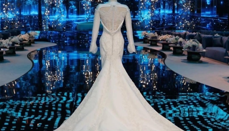 وتألقت الأميرة حصة بنت فيصل بن عبدالله بفستان زفاف ملكي ساحر من توقيع دار فيرزاتشي، واختارت قصة الـMermaid الراقية، وتميّز الفستان بقصّة محبوكة تبرز جمال القوام، مع تفاصيل ناعمة أضفت لمسة من الرقي، بينما جاء الذيل المزدوج ليجمع بين الفخامة والبساطة، ما جعل الإطلالة أيقونية.