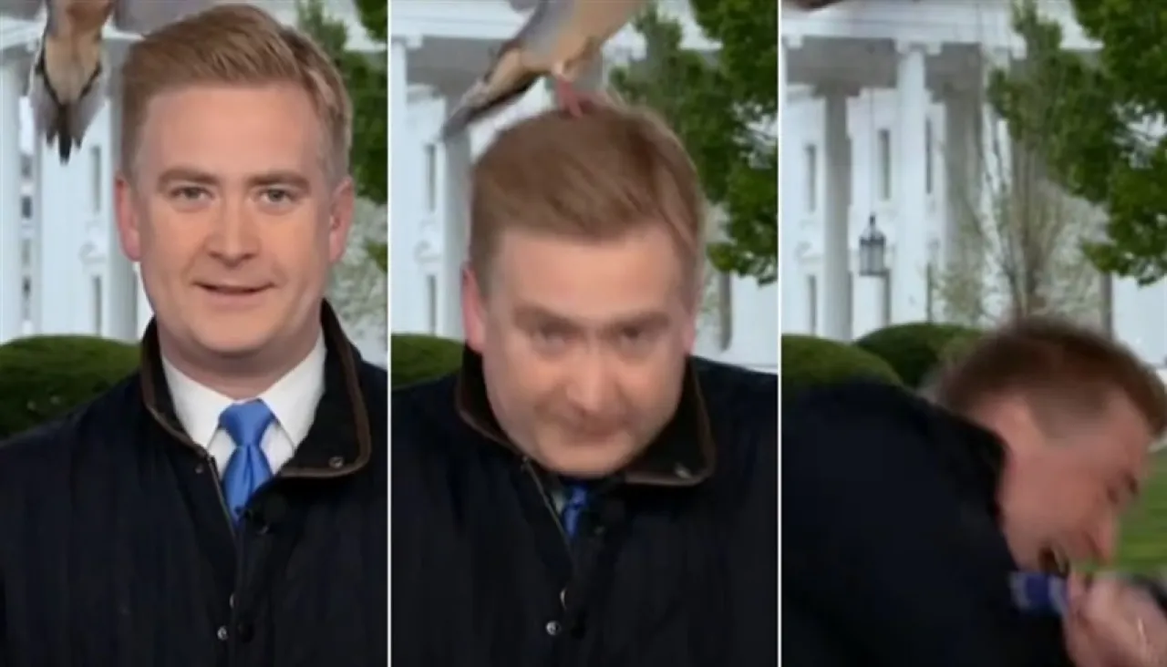 ووفق الفيديو الذي نشرته "USA TODAY" أظهر مقطع فيديو حمامة كبيرة تحاول الجلوس على رأس مراسل "فوكس نيوز" بيتر دوسي أثناء تقديمه تقريره المباشر صباحاً، ما أجبره على الانحناء فزعاً وهو يصرخ: "إنها على رأسي".