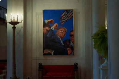 واستبدل الرئيس الأمريكي صورة أوباما في البيت الأبيض بلوحة تظهره وهو ينجو من محاولة اغتيال.