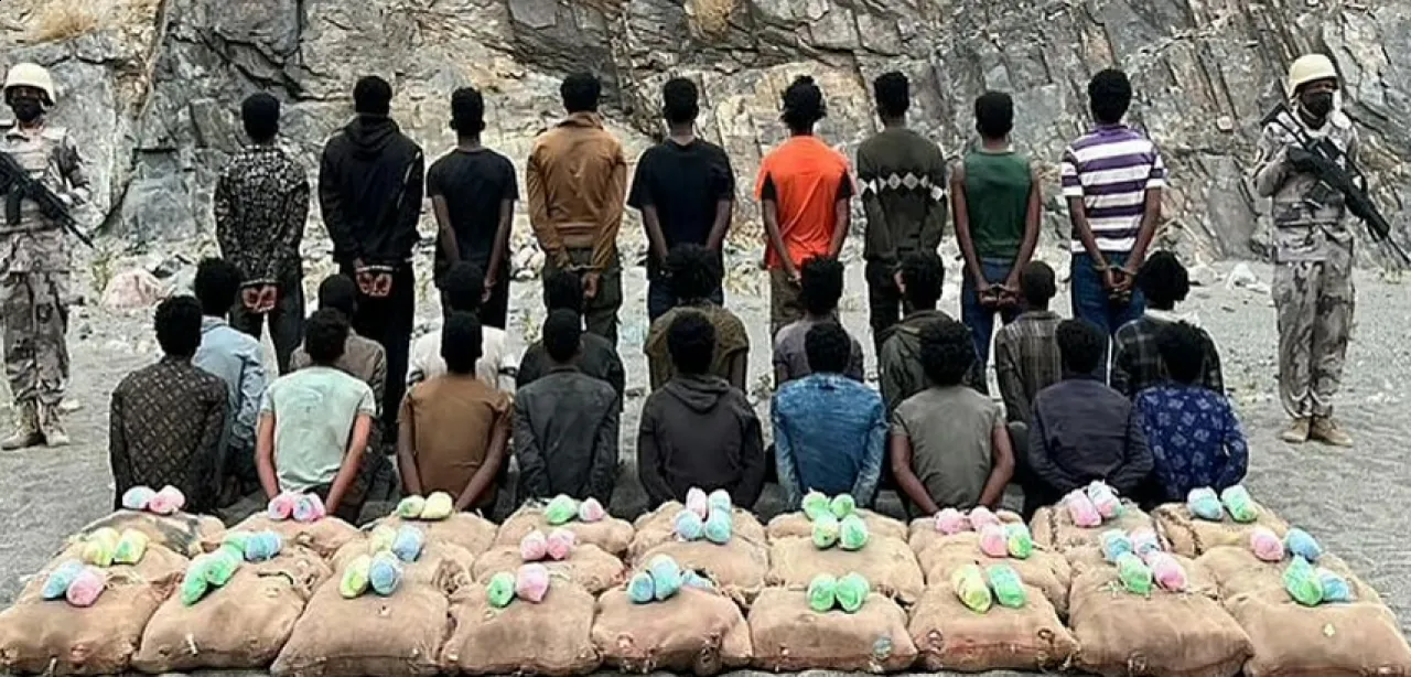 خبرني - تواصل الجهات الأمنية السعودية جهودها على مدار الساعة في إحباط عمليات ترويج وتهريب المخدرات والقبض على المتورطين فيها حيث قبضت الدوريات البرية لحرس الحدود في قطاع الربوعة بمنطقة عسير على (27) مخالفاً لنظام أمن الحدود من الجنسية الإثيوبية، لتهريبهم (405) كيلوجرامات من نبات القات.