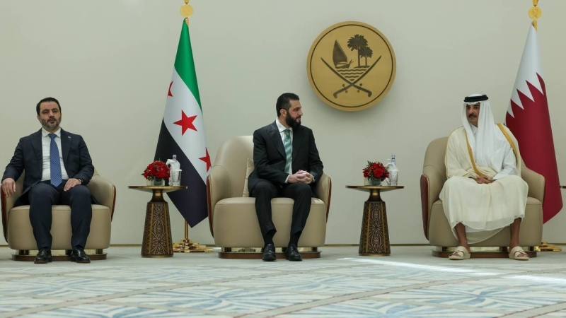 وكان أمير قطر أول زعيم عربي يزور الشرع في دمشق بعد تنصيبه رئيسا لسوريا.