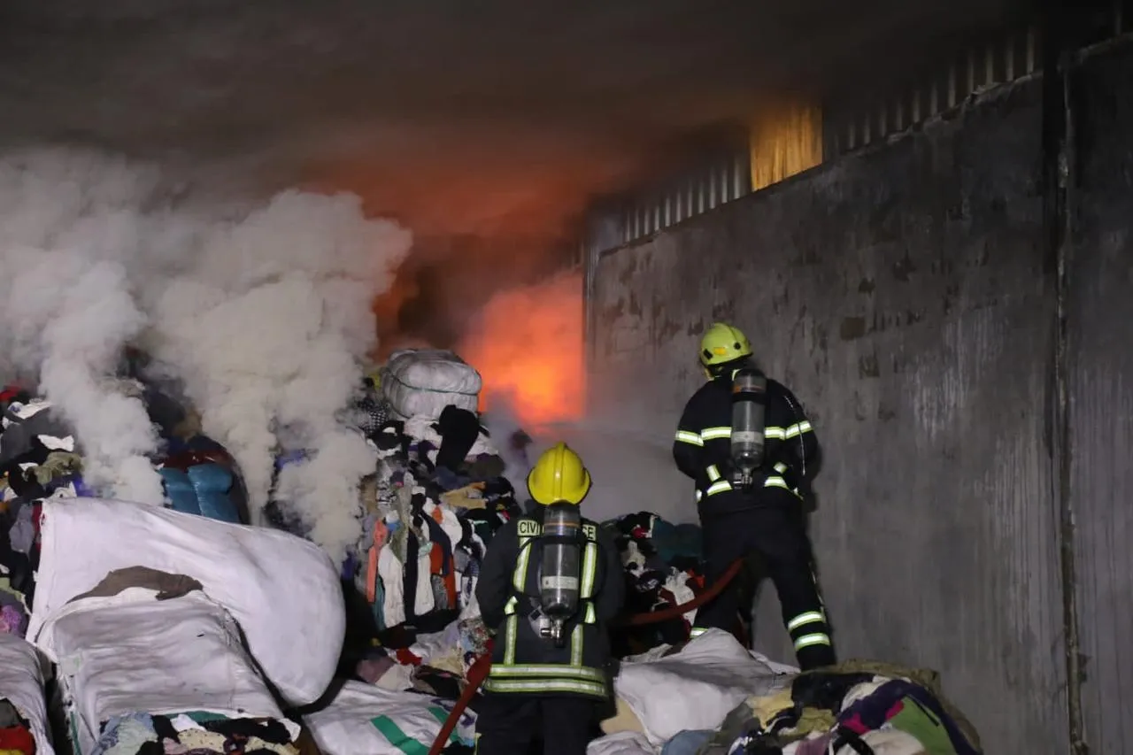خبرني - صرح الناطق الإعلامي في مديرية الامن العام بان الكوادر المتخصصة في مديرية دفاع مدني الزرقاء والشرطة تمكنت اليوم من إخماد حريق أتى على هنجر بمساحة (٦٠٠) م٢ تقريبا ؛ يحتوي على أقمشة وملابس مستعملة (باله ) بالمنطقة الحرة في محافظة الزرقاء.