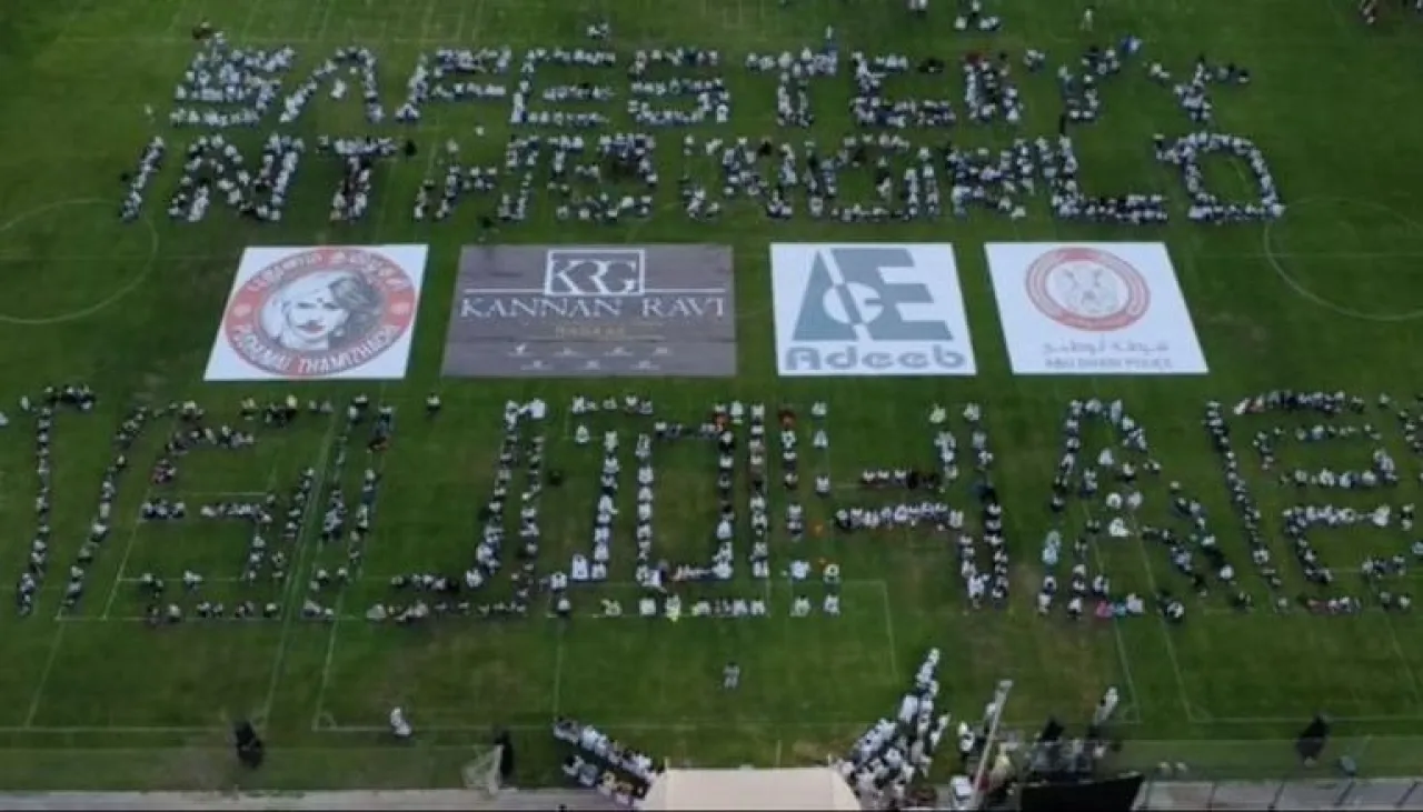 خبرني - شارك أكثر من 5 آلاف شخص من طلبة المدارس وأولياء الأمور في تشكيل بشري ، لعبارة "أبوظبي المدينة الأكثر أمانًا في العالم"، ضمن فعالية مجتمعية، نظمتها إدارة الشرطة المجتمعية بقطاع الأمن الجنائي في شرطة أبوظبي، بالتعاون مع شركة أديب للكهرباء ومن مختلف