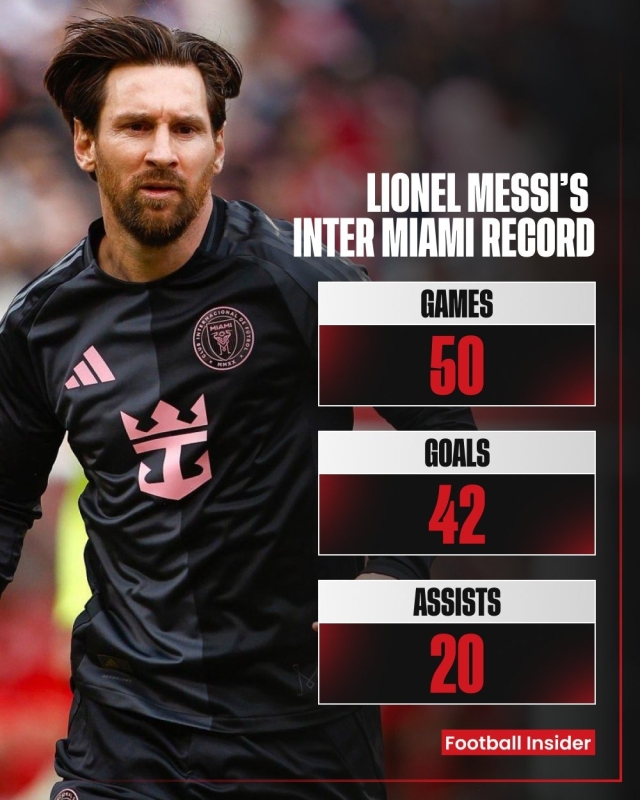 وأكد موقع فوتبول إنسايدر أن "البرغوث" الأرجنتيني وصل إلى المباراة رقم 50 في كل البطولات مع فريقه إنتر ميامي الأمريكي.