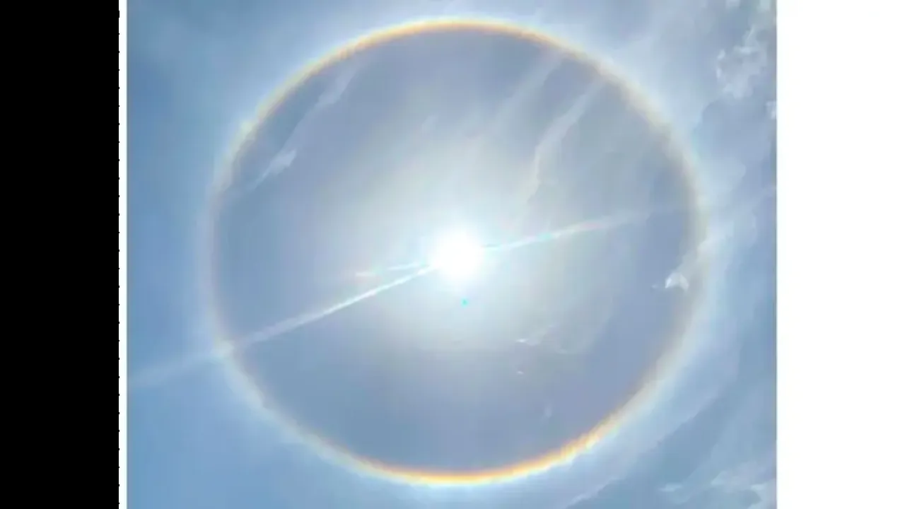خبرني - رصد صباح اليوم الخميس 24 أبريل 2025، ظهور حلقة ضوئية تحيط بقرص الشمس في قبة السماء فوق محافظة صبيا جنوب السعودية.