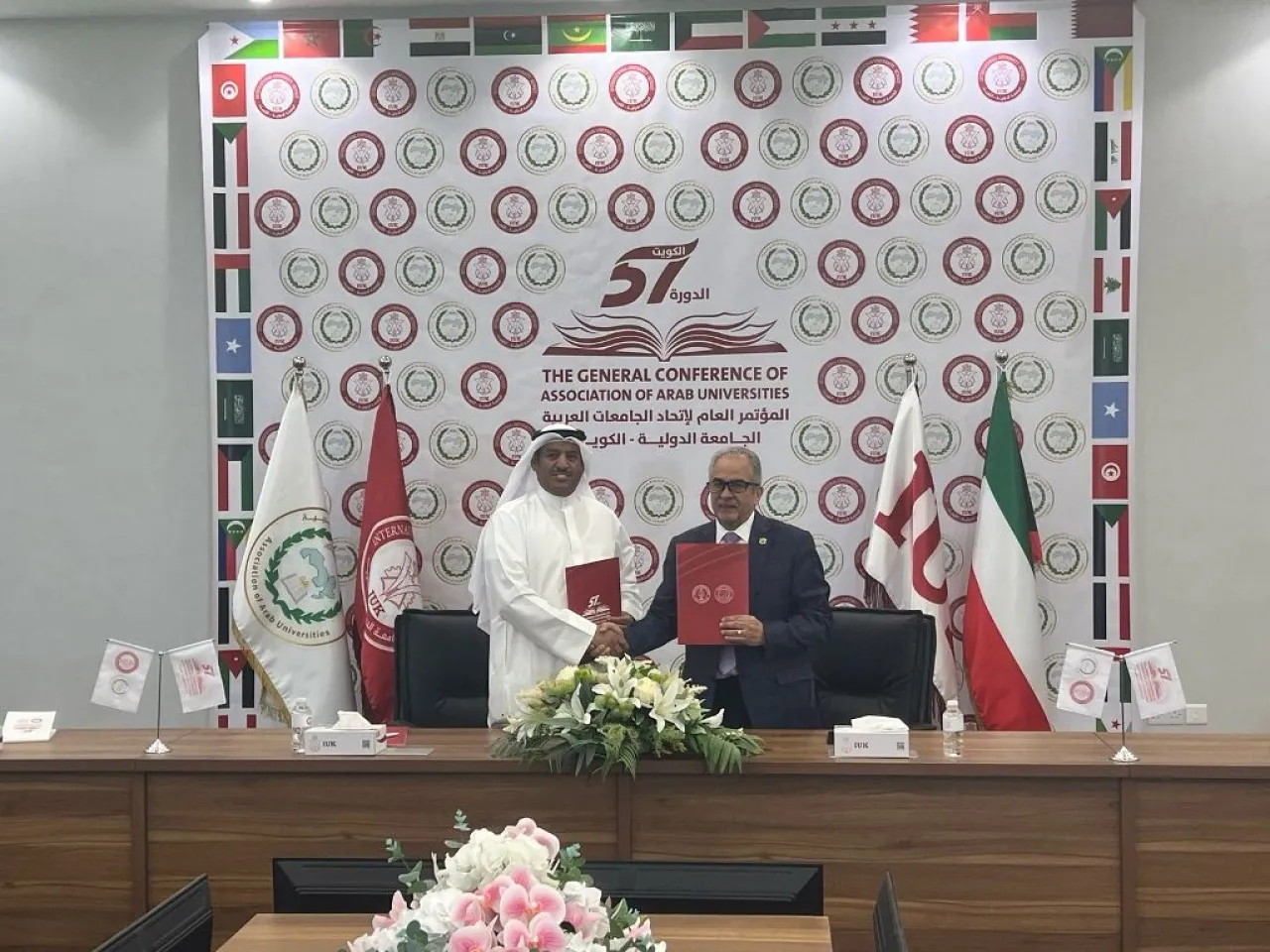 خبرني - خلال المشاركة بأعمال المؤتمر العام السابع والخمسين لاتحاد الجامعات العربية، الذي استضافته الجامعة الدولية للعلوم والتكنولوجيا في دولة الكويت خلال الفترة من 23 إلى 24 أبريل 2025، وفي إطار السعي لتعزيز التعاون الأكاديمي والبحثي على المستويين الإقليمي والدولي، وقّعت جامعة عمّان الأهلية ، ممثلة برئيسها الأستاذ الدكتور ساري حمدان، مذكرتي تفاهم مع كل من الجامعة الدولية للعلوم والتكنولوجيا الكويتية، وجامعة الجنان اللبنانية.