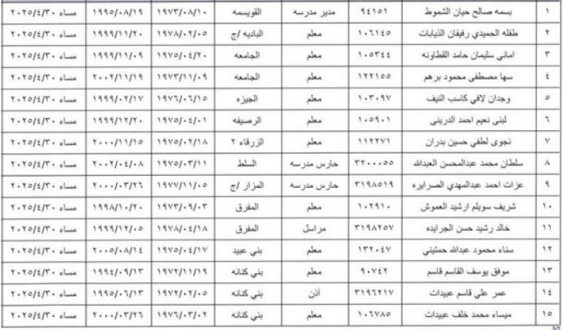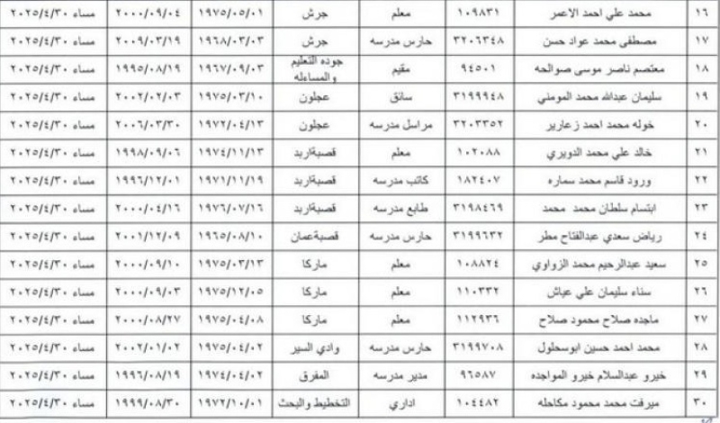 قرر وزير التربية والتعليم الدكتور عزمي محافظة إنهاء خدمات 33 موظفا لاستكمالهم شروط الحصول على راتب التقاعد المبكر من حيث العمر وعدد الاشتراكات.