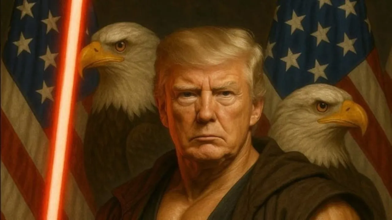 فقد نشر الحساب الذي أثار سابقا بعض الجدل والتساؤلات حول من يديره، صورة للرئيس الأميركي دونالد ترمب معدلة بالذكاء الاصطناعي، مفتول العضلات، وشاهراً "السيف الأحمر".