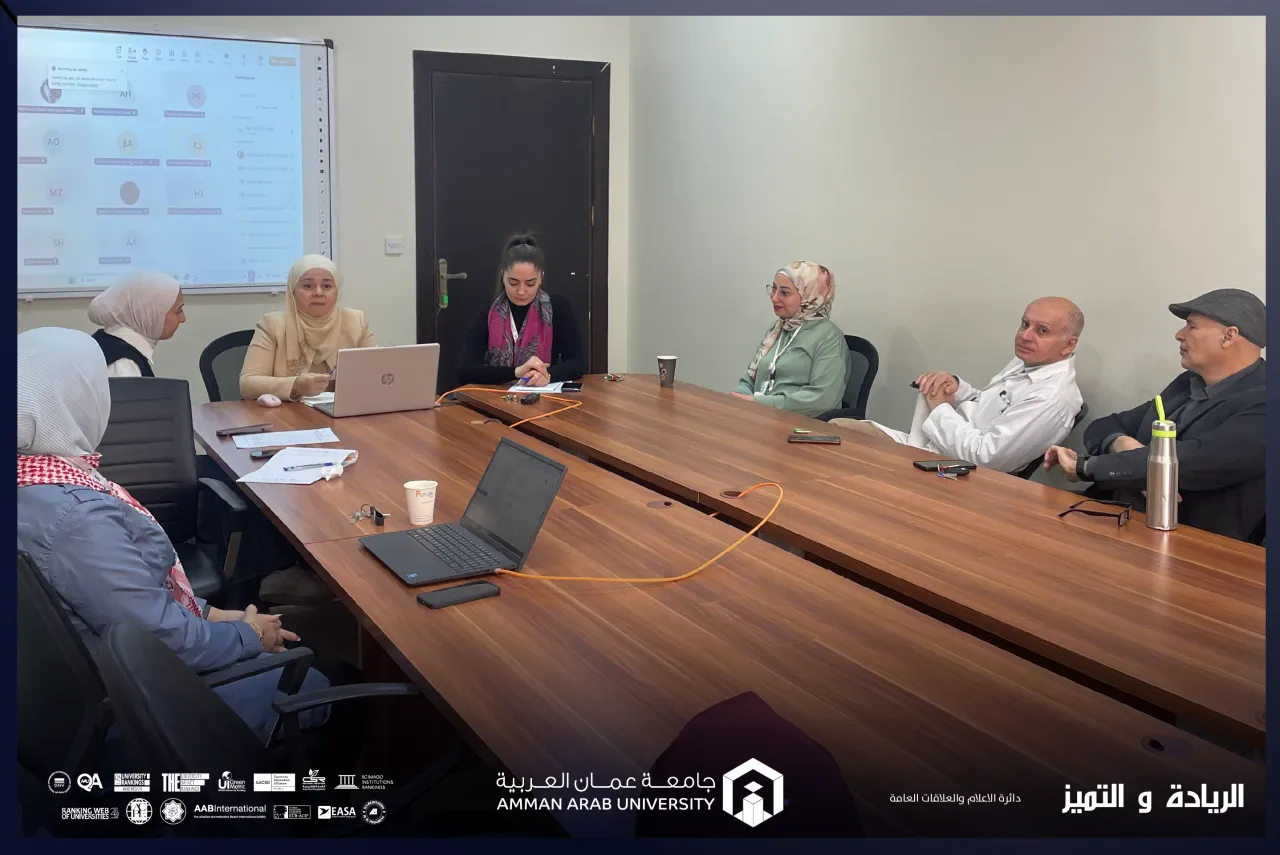 خبرني - في إطار حرص جامعة عمّان العربية على ترسيخ مبدأ الشراكة الحقيقية وتعزيز جسور التواصل مع طلبتها عقدت كلية الصيدلة في جامعة عمان العربية اجتماعاً حوارياً موسعاً مع الطلبة بحضور الأستاذ الدكتورة رنا أبو حويج عميد كلية الصيدلة وأعضاء الهيئتين التدريسية والإدارية في الكلية، حيث أقيمت الجلسة حضورياً، مع إتاحة المشاركة عن بُعد عبر منصة Microsoft Teams لضمان مشاركة العدد الأكبر من الطلبة.