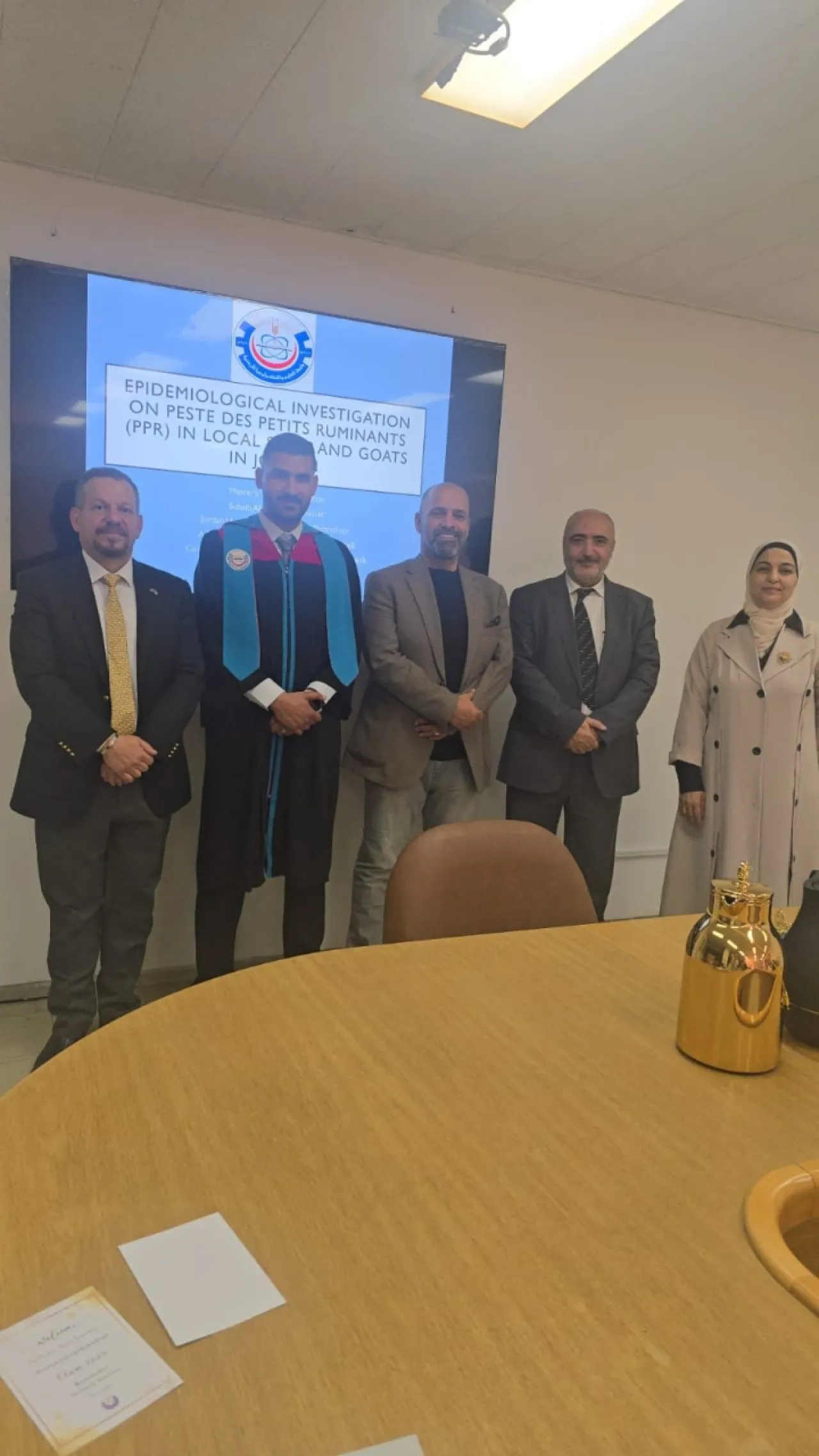 خبرني - نبارك للدكتور صهيب عبدالحفيظ ابو ناصر بمناسبة حصوله على درجة الماجستير في "علم الاوبئة البيطرية" من جامعة العلوم و التكنولوجيا الأردنية والموسومة بعنوان : (التحقيق الوبائي لمرض طاعون المجترات الصغيرة (PPR) في الأغنام والماعز المحلية في الأردن) مبارك دكتور ونتمى لك المزيد من التقدم والنجاح