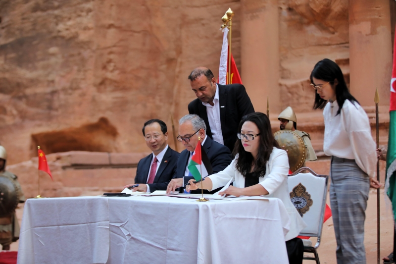 ووقّع الاتفاقية رئيس مجلس مفوضي سلطة إقليم البترا التنموي السياحي الدكتور فارس البريزات، ومديرة مكتب الثقافة والسياحة في بلدية جيايوغوان تشاو شومين، لتعزيز الروابط بين البلدين وتبادل الخبرات في مختلف القطاعات الحيوية، بحضور السفير الصيني في الاردن تشن تشوان دونغ، والسفير الاسباني في الأردن ميغيل دي لوكاس، وعدد من المسؤولين الحكوميين، وممثلي المجتمع المحلي في البترا.