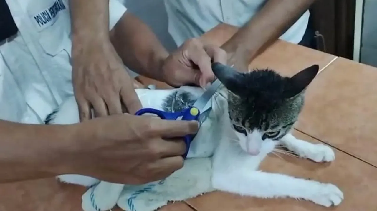 وسُلمت القطة إلى جمعية متخصصة في رعاية الحيوانات.