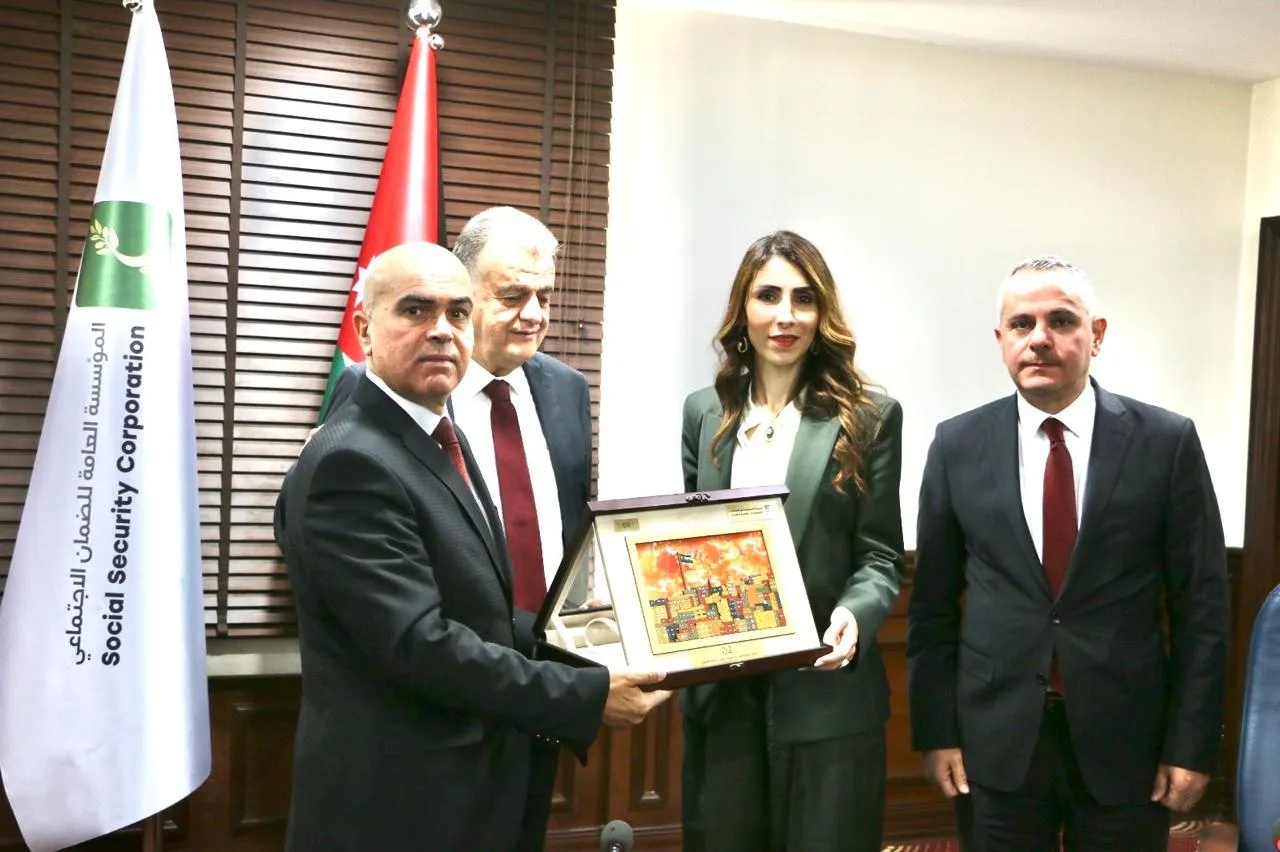 Al-Khlaileh confirmed during his reception of the delegation the Corporation's full readiness to assist the Palestinian brethren in various aspects that would develop and improve the level of protection, benefits, services, procedures, and mechanisms related to retirement and social security. He added that the Corporation had previously communicated with the Palestinian Retirement Authority and informed them about its experiences in this field, continuing to enhance the partnership, its continuity, and to utilize insurance and technical expertise in their favor.