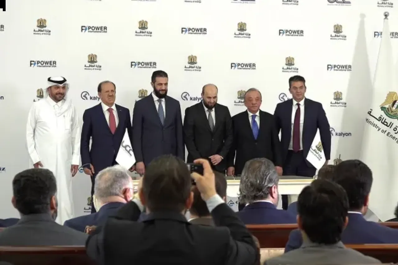 خبرني - بحضور الرئيس السوري أحمد الشرع، وُقع في دمشق -اليوم الخميس- مذكرة تفاهم بين وزير الطاقة السوري محمد البشير وتحالف شركات بمجال الطاقة لتعزيز مجالات الاستثمار في قطاع الطاقة وتوليد الكهرباء في البلاد.