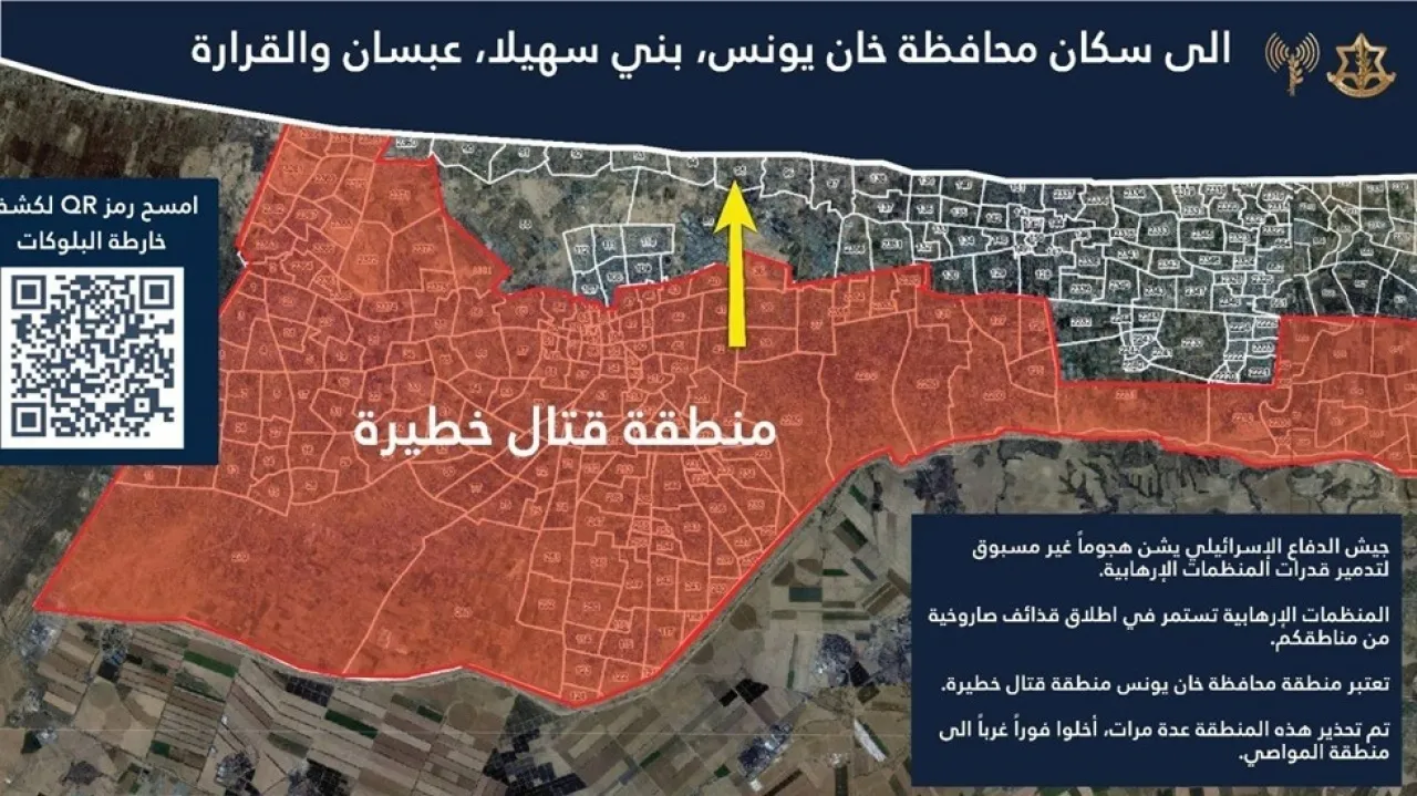 خبرني - وجه جيش الاحتلال ، يوم السبت، تحذيرا لسكان مدينة خان يونس وبلدتي بني سهيلا وعبسان جنوبي قطاع غزة، من عمليات سيجريها في المنطقة.
