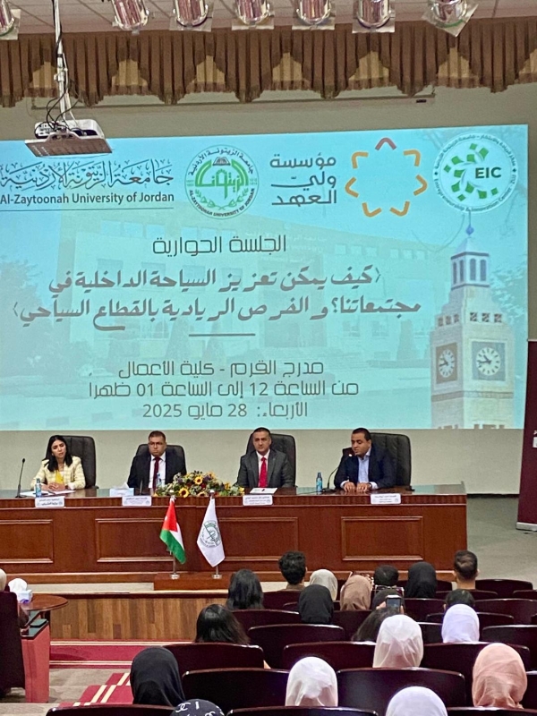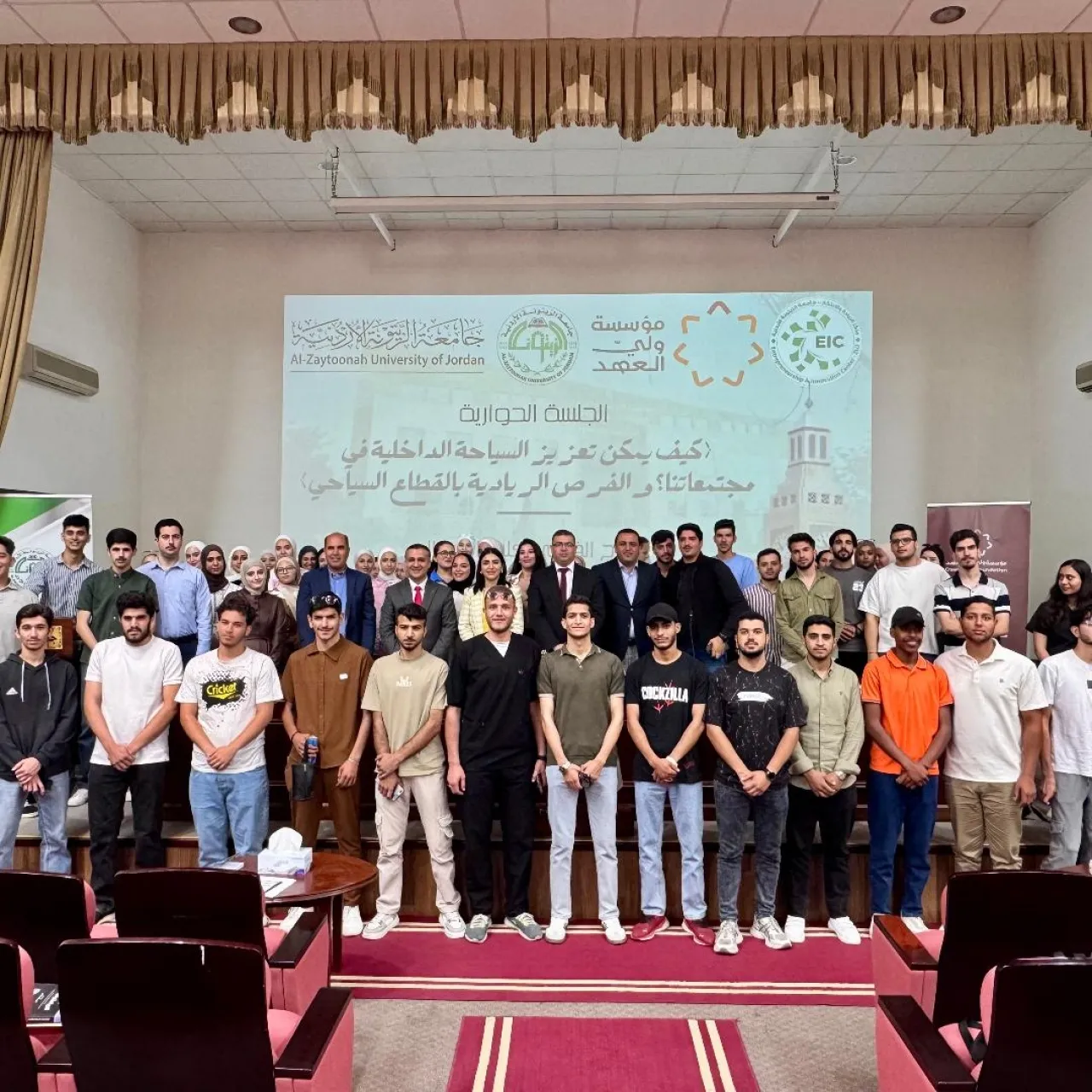 خبرني - نظّم مركز الريادة والابتكار في جامعة الزيتونة الأردنية، بالتعاون مع مؤسسة ولي العهد، جلسةً حوارية بعنوان: "كيف يمكن تعزيز السياحة الداخلية في مجتمعاتنا؟ والفرص الريادية في القطاع السياحي"، وذلك بحضور فريق من المؤسسة، وعدد من أعضاء الهيئة التدريسية، وطلبة من مختلف التخصصات والكليات، بالإضافة إلى مشاركة الدكتورة ختام العبادي من وزارة الشباب.