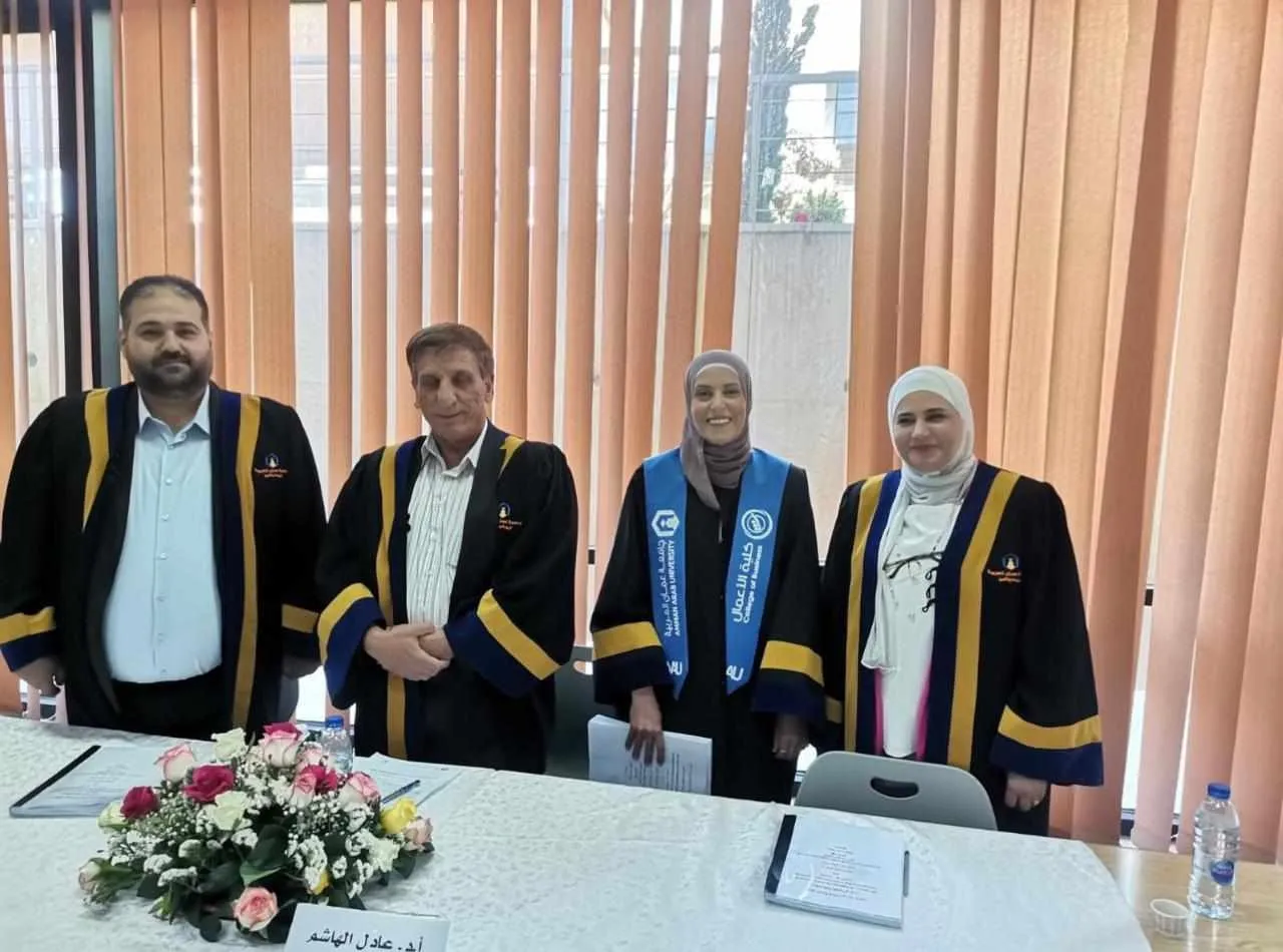 خبرني - الأهل والأقارب يهنئون ابنتهم رنا عبدالله الصليبي المناصير بمناسبة مناقشة رسالة الماجستير بتقدير امتياز من كلية الاعمال ، جامعه عمان العربية.