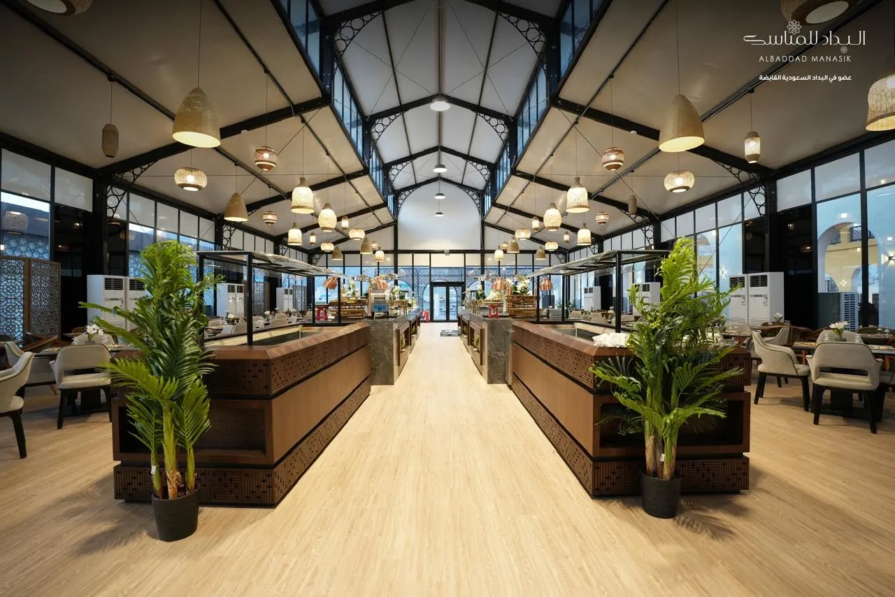 "حرصنا على توفير كل التفاصيل التي ترتقي بتجربة الحاج، حيث تضمّنت الصالات مصليات بإشراف هيئة تطوير المشاعر المقدسة، بوفيهات مفتوحة، طاولات طعام وكراسي فاخرة، دورات مياه مستقلة، مداخل خاصة، إنارة داخلية وخارجية، ومساحات خضراء مزوّدة بإضاءة مميزة. وقد راعينا في تصميم الخيام الطابع العصري والفاخر بما يليق بضيوف الرحمن، مع توزيع ذكي يغطي الجوانب التشغيلية والطبية واللوجستية."