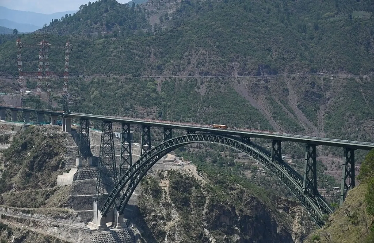 واستغرق بناء جسر "تشيناب" المقوس عدة عقود، ويبلغ ارتفاعه 359 مترا (نحو 1180 قدما) فوق نهر يحمل الاسم نفسه، مما يجعله أعلى بـ29 مترًا من قمة برج إيفل في باريس.
